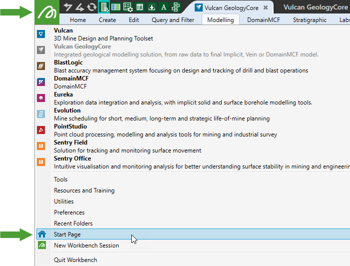 Switch to the Workbench Start Page. If the Start Page is not open, you can open it any time by going to