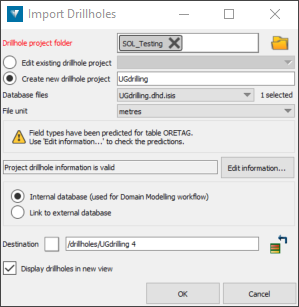 Click Edit information... to edit the drillhole project information, such as table and field types and coordinate system information.
