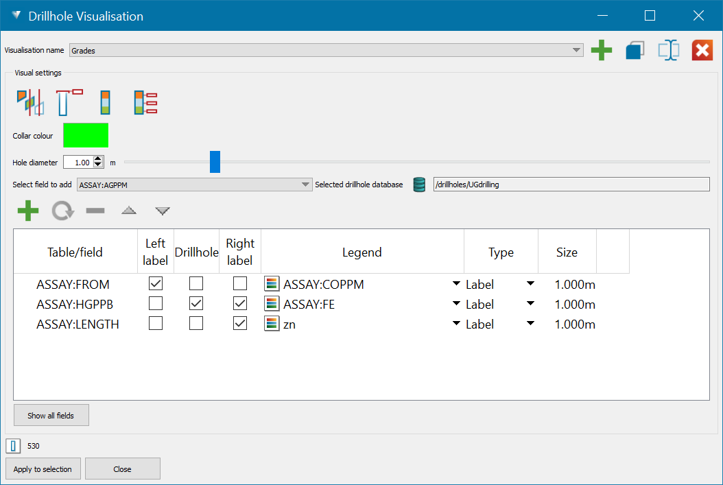 Click Apply to selection to apply the current settings to the selected drillholes.