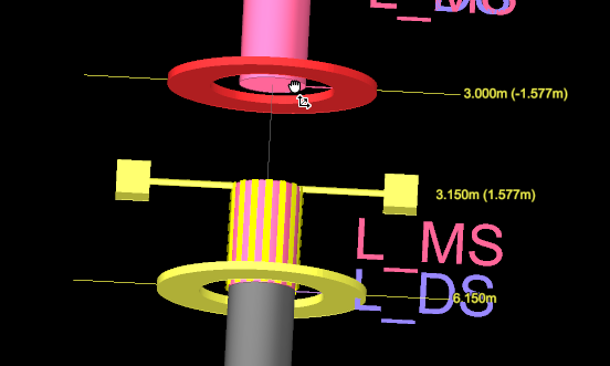 The toroid-shaped handles are located at the start and end of the interval and are labelled with the interval’s “from” and “to” depths.