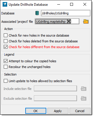 Update.The Update Drillhole Database panel appears.