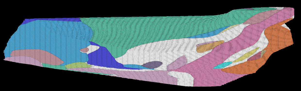 To colour the block model, right-click on it in the view, and in the context menu select Colour By > Domain.
