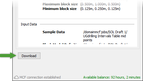 When processing is complete, click Download to download the resulting block model, which will be stored in the block models container