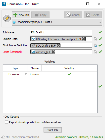 By default, DomainMCF will perform domain prediction on the selected domain variable. You can also select the following job options: