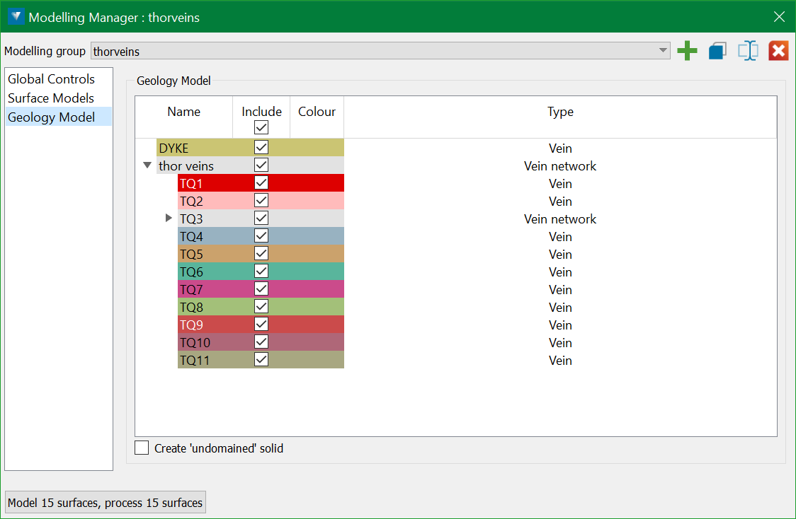 Items can be added to the Geology Model using the checkboxes in the Include column.