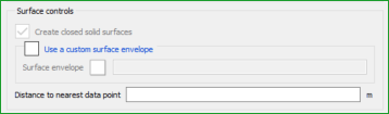 Use a custom surface envelope - By default, the bounding box defined in the global controls for the Modelling Manager will be used as the Surface envelope to define the limits of intrusive models. If required, a custom surface envelope can be used that may limit the model to a smaller sub-region of the modelling bounding box.