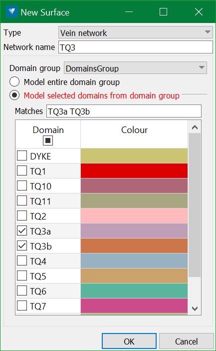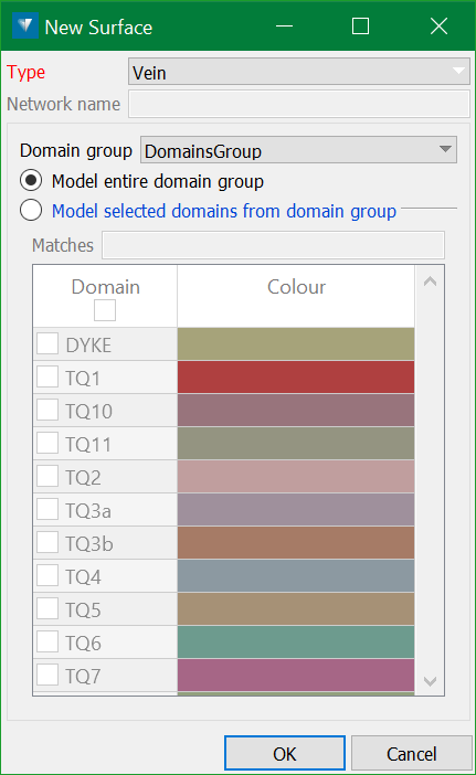 Once the type of surface to be added is chosen, select the data source from the Domain group drop-down list.