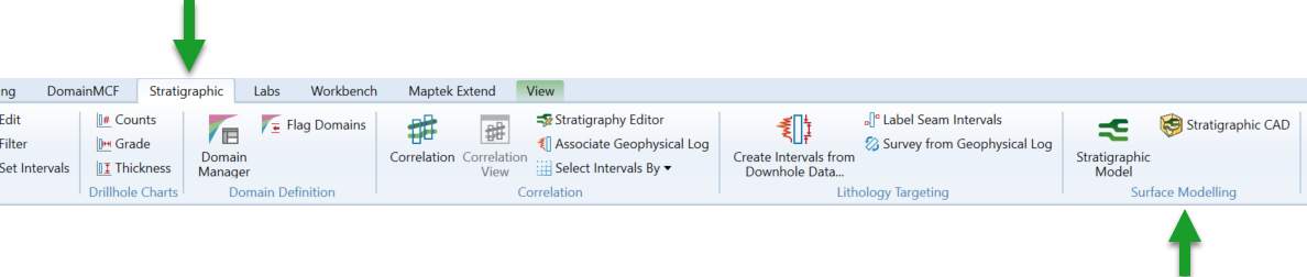 The tools for working with Stratigraphic Model are all located on the Stratigraphic ribbon tab.