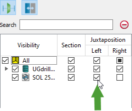 A convenient way to compare a model against the drillholes is to use juxtaposition view in combination with the section tool.
