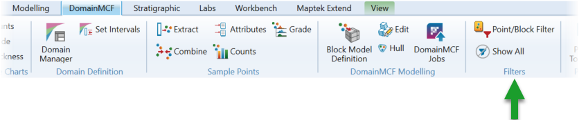 For block models, it is helpful to control the visibility of individual domains within the model. You can do this using the Point/Block Filter. The same tool can also be used to filter any attributed point data.