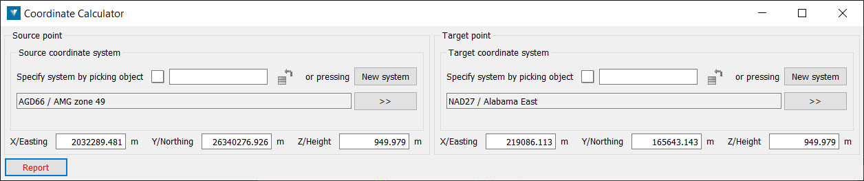The Coordinate calculator is used to report the position of a given point in any other coordinate system. For example, to show the latitude and longitude of a point with coordinates in a UTM grid.