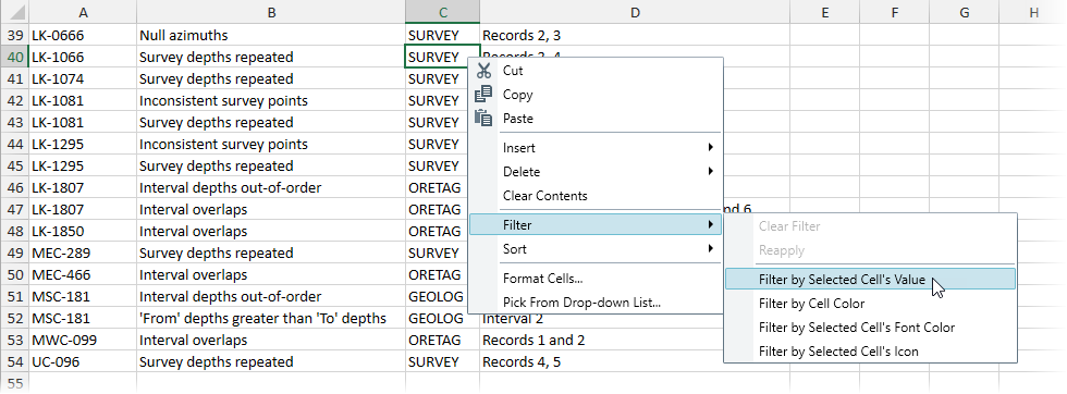 We recommend the following approach to fixing validation errors in GeologyCore. For every drillhole with consistency errors detected: