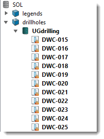 - To insert drillholes into the list, select them in the project explorer or in the view window and click
