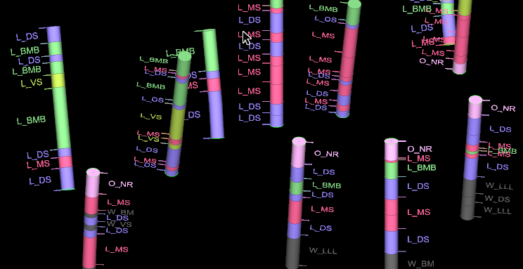 Changing the drillhole visualisation to display the fields in the database table you’re interested in will help you to make sense of the data, and give you visual clues about consistency problems. -