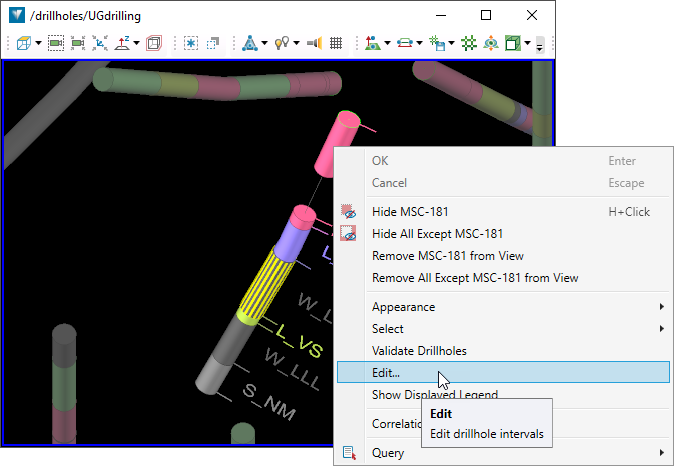 Right-click on the drillhole in the view and select Edit... from the context menu.