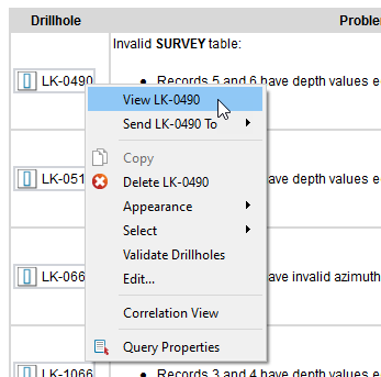 Drillhole databases are automatically validated on import, but you can re-run the validation checks at any time.