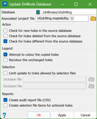 If changes are made to the drillhole database externally, update the database in GeologyCore at any time using the Update Drillhole Database tool.
