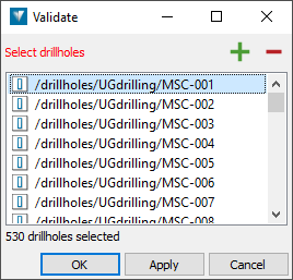 Click OK or Apply to run the validation checks on the drillholes in the list.