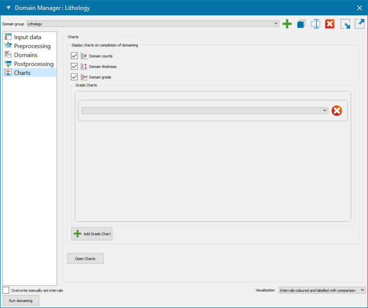 Optionally click Open Charts to generate the charts immediately. The charts will display the current statistics—i.e. before domaining is applied.