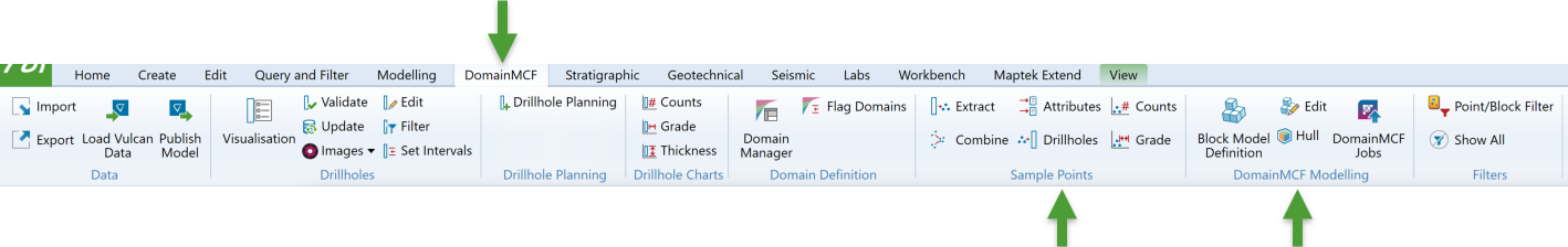The tools for working with DomainMCF are all located on the DomainMCF ribbon tab.