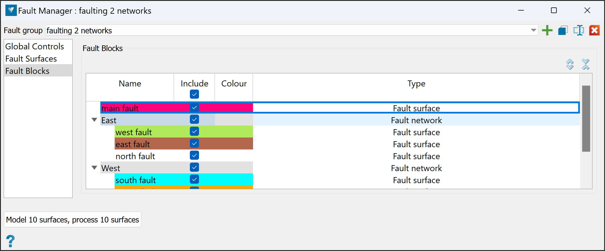 Items can be added to the Fault Blocks using the checkboxes in the Include column.