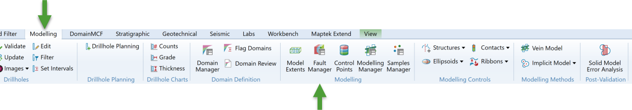 On the ribbon, navigate to Modelling > Fault Modelling > Fault Manager.