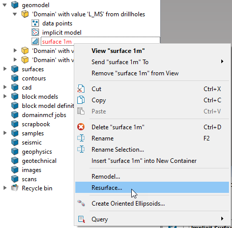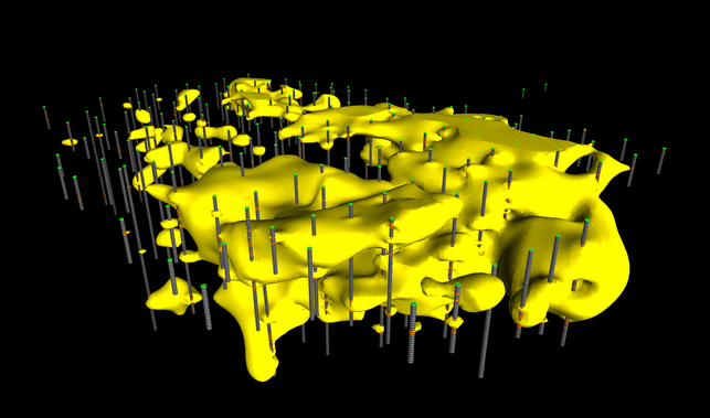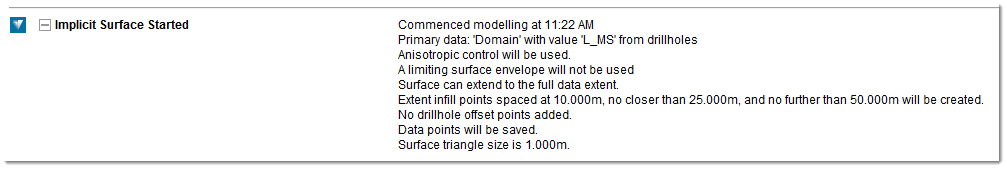 Implicit Model tool allows you to generate implicit models and surfaces from drillhole and interpretive CAD data, controlled with anisotropic information (via ellipsoids) and other parameters.