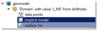 , if generated, is linked to its implicit model object. You can see which surfaces are associated with a model by selecting the implicit model object