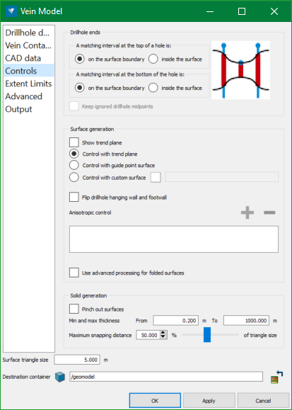 Control surface - select this checkbox to generate the surface from the mid points of the vein intervals.