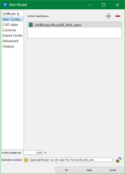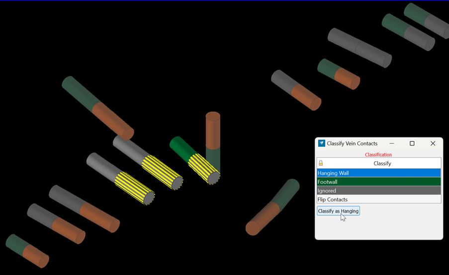 Classified drillhole contacts—choose to generate the contacts and wall classifications extracted from input drillholes. The classifications can be edited manually and used for future modelling.