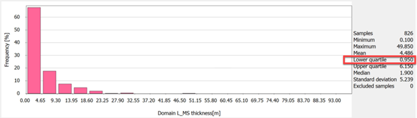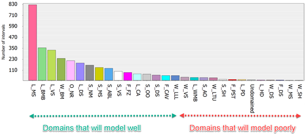 Domains that account for less than 1% of the total samples will be poorly represented in your model. Consider combining minor domains, modelling only important domains or densifying samples where important domains are poorly represented in your drilling.
