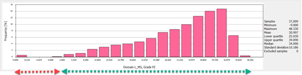 Negative and non-real data should be removed prior to grade trend modelling. Values from domain specific statistics can be used to replace negative and non-real data values in these cases.