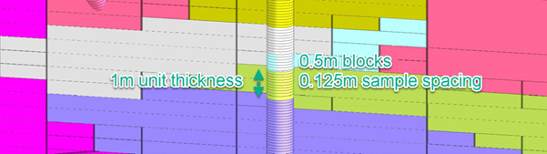 Thin units with few samples are easily swamped by thick units with many samples. Densifying samples to ¼ the block height ensures that thin units are modelled accurately.