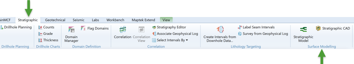 The tools for working with Stratigraphic Model are all located on the Stratigraphic ribbon tab.