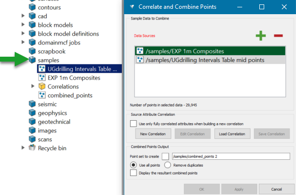Combine.The Correlate and Combine Points panel appears.