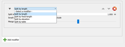 Split by length: Divides intervals based on a specified length. Any remaining part of an interval shorter than this length is handled based on user selection.