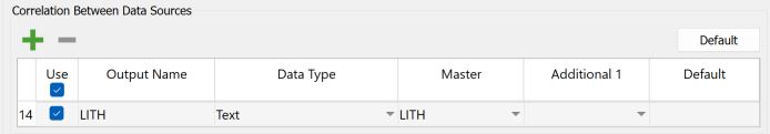 For each Additional source, you can select the corresponding field to be correlated. The automatically generated correlation might use the wrong field or miss a match due to differing names (e.g., S for sulphur in one database and S_PPM in another). An empty correlation is valid, but if no sources have a matching field for an attribute, it may be better to delete that row.