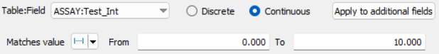Continuous Value: Options are the same as floating point numeric fields (range, less than, greater than, equal to, not empty).
