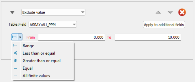Less than or equal to: Exclude values less than or equal to a specified value.