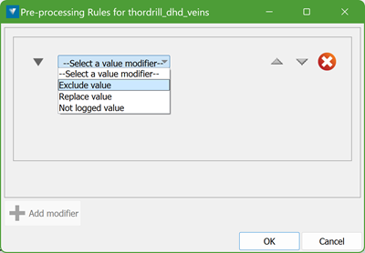 The process for selecting the condition for "not logged" data works the same way as the other modifiers. Similarly, the process for specifying the substitute value follows the same method as the replacement value in Replace value modifier.