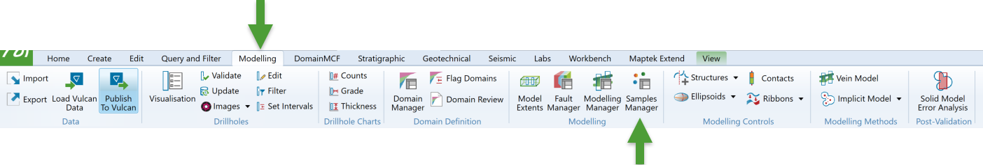 The Samples Manager tool is located under the Modelling section of the Modelling ribbon tab.