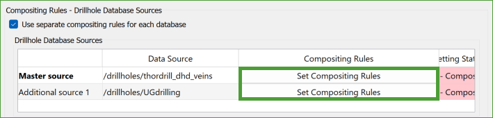 The Compositing tab allows you to define the rules for compositing drillholes.