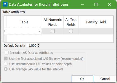 Include LAS Data as Attributes: If any selected holes have LAS data, this option will be enabled. Select this option to add LAS values as attributes to the created points.