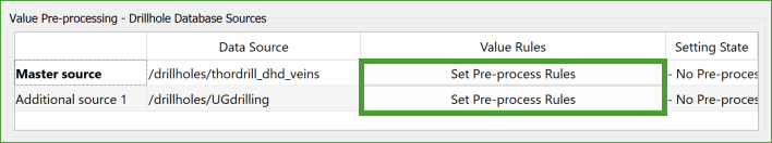 To create these value pre-processing rules, click the Set Pre-process Rules button next to the corresponding database, which will open a panel for defining the rules.