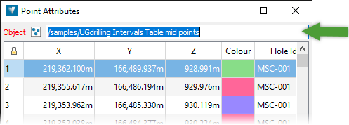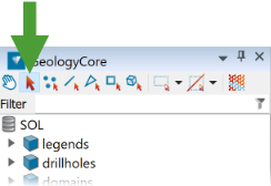 Almost all operations in GeologyCore require you to select some data to work on. There are two basic kinds of selection: object selections and primitive selections. Object selections are used to operate on objects as a whole, while primitive selections are used to operate on the constituent elements of objects, such as points and edges.