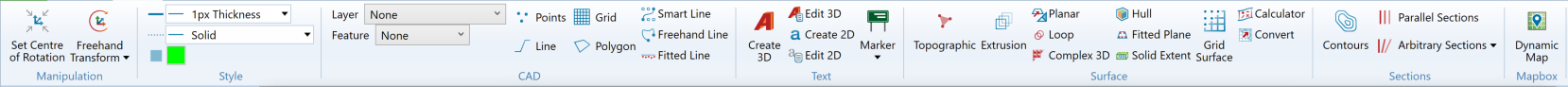 You can find the following sets of functions in the Create ribbon menu: