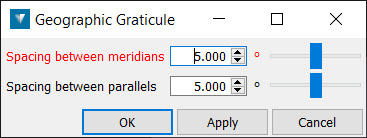 Specify a spacing between Meridians (longitude) and Parallels (latitude).