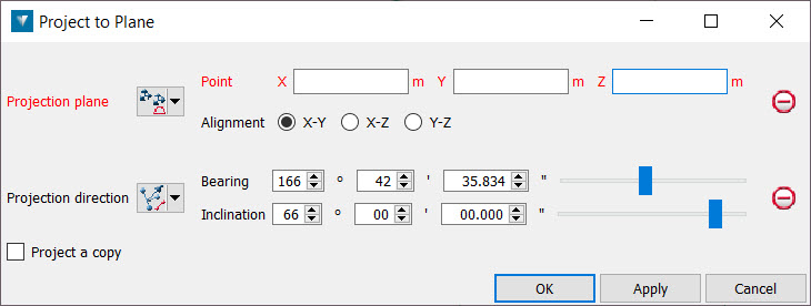 Specify a Projection direction for the lines or points. Specify the Bearing and Inclination by adjusting the sliders.