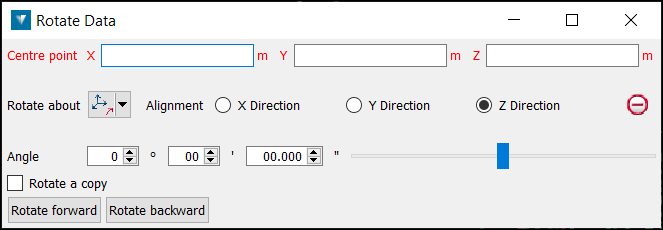 Rotate data is used to rotate data around the three axes (X, Y, Z) or around an arbitrary axis. Note: Drillholes can not be transformed using these tools.