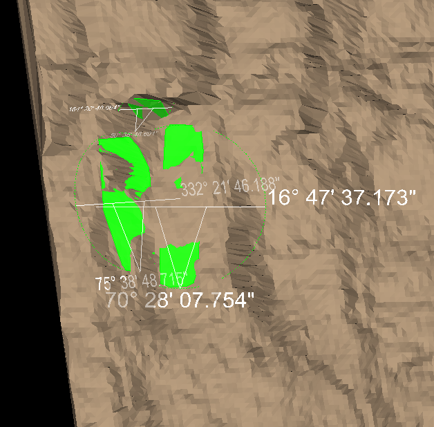 Go to Geotechnical > Colour > Colour Dip and Strike to highlight the areas to be analysed.
